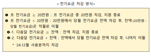 대상자 통보 후 최초 발행되는 2024년 전기요금 고지서 상 청구되는 전기요금부터 최대 20만 원 차감