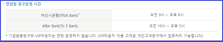 단, 국민은행은 바쁘신 직장인들을 위하여 영업시간 특화점포를 운영하고 있습니다.