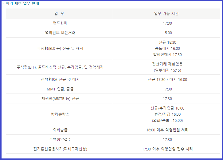 지금까지 국민은행 지점 영업시간, 점심시간, 특화점포 영업시간, 특화점포 처리 제한