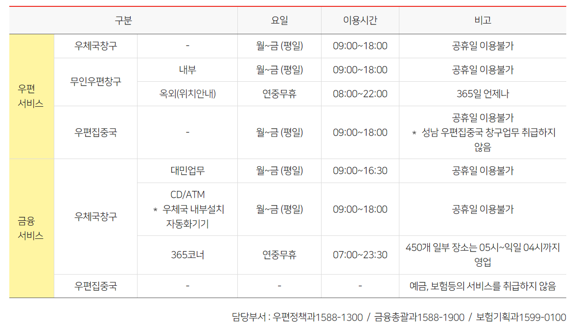 1. 우체국 영업시간 (우편업무, 금융업무)