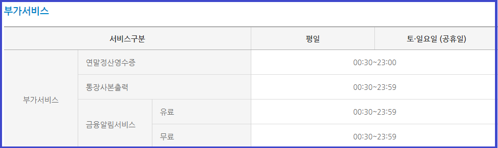 영업시간 외 : 은행휴무일 및 영업시간 내 이외의 시간