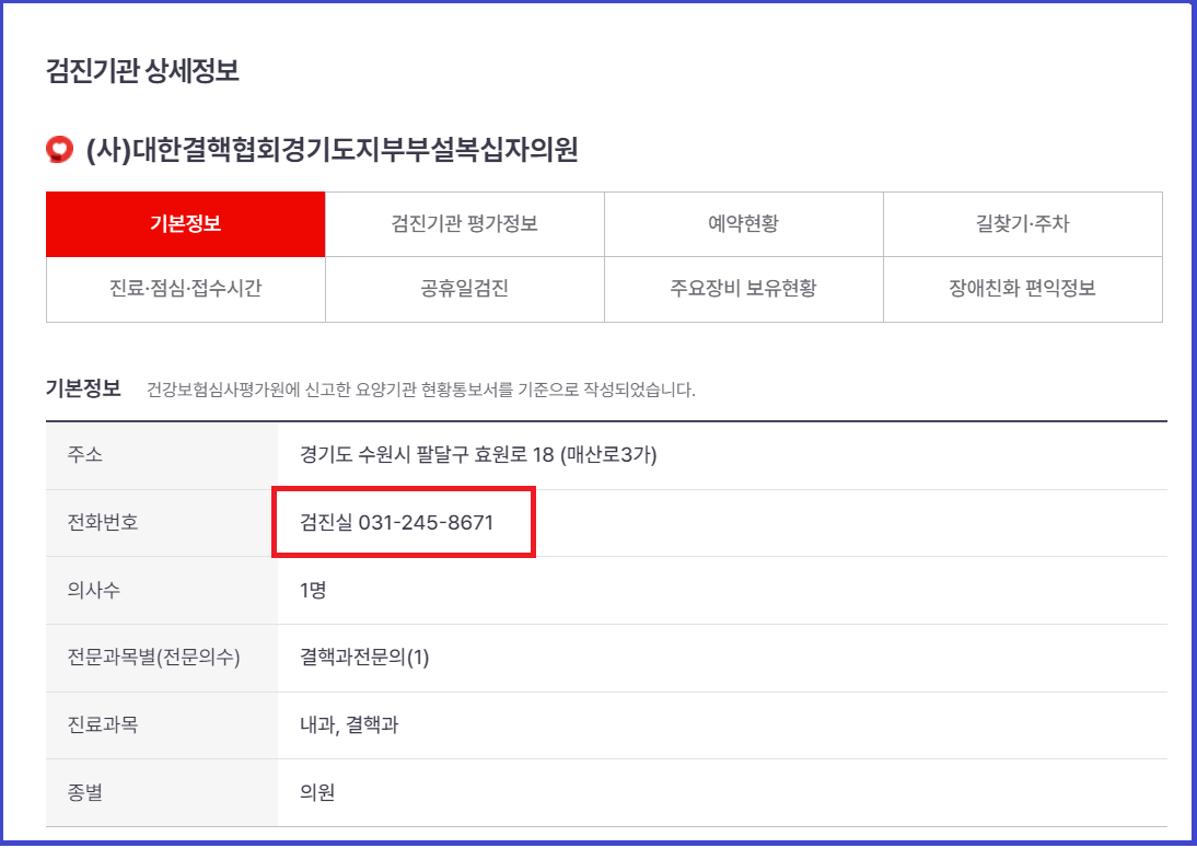 4. 해당 병원의 검진 항목을 확인한 후 본인이 검진해야 할 항목들을 검사한다면 전화를 걸어