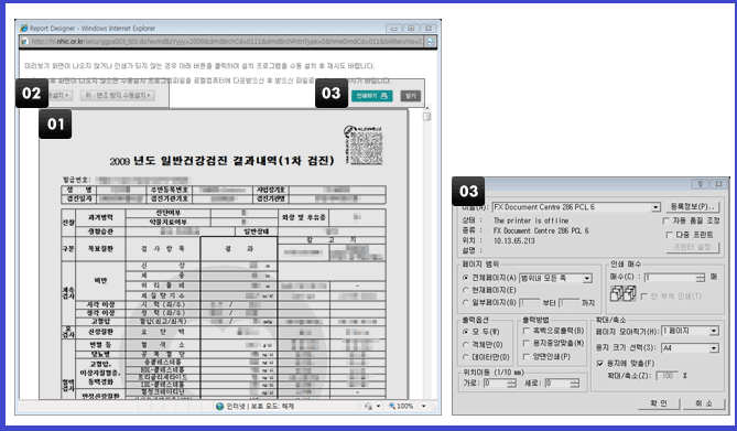 3. 확인된 결과내역을 인쇄할 수 있습니다.