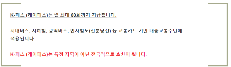 K-패스 환급 혜택을 받으실 수 있습니다.