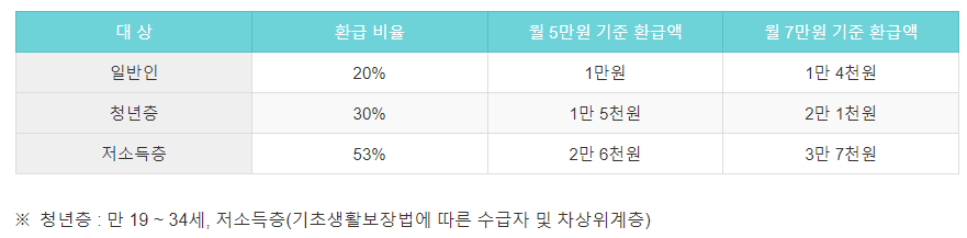 대상에 따라 교통비 환급액이 차등으로 지급됩니다.