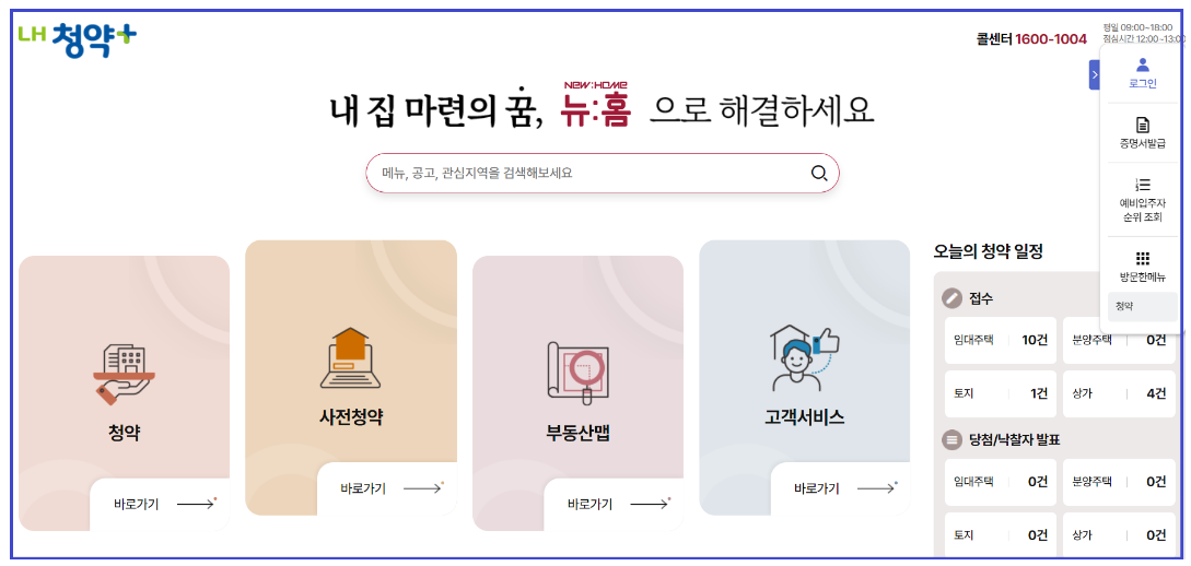 1. LH 청약 플러스 홈페이지에 접속을 합니다.