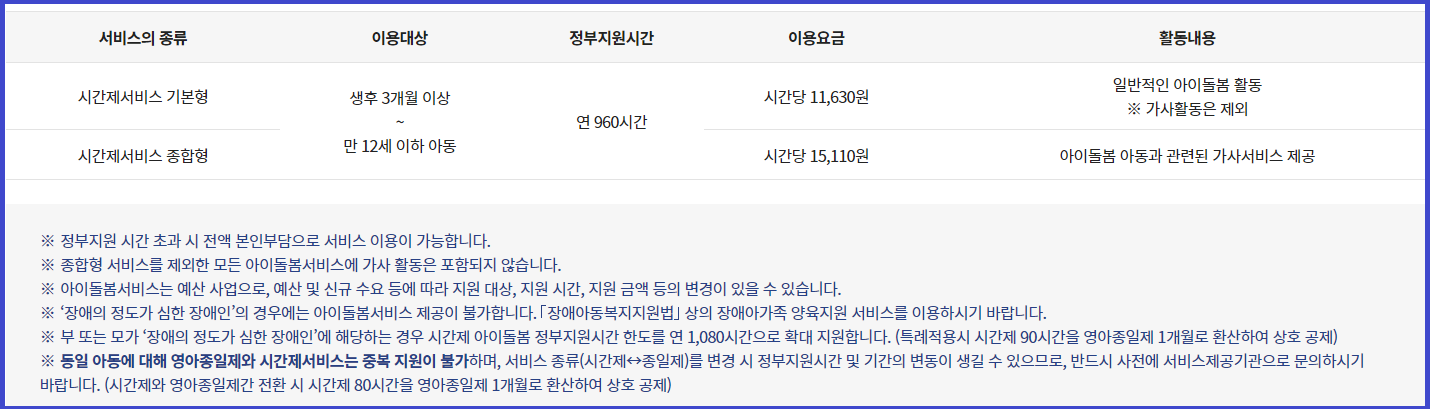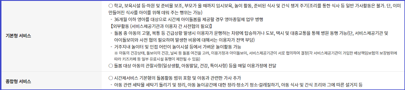 영아종일제서비스 돌봄 활동 범위 및 서비스 이용요금 바로가기 ▶ ▶ ▶