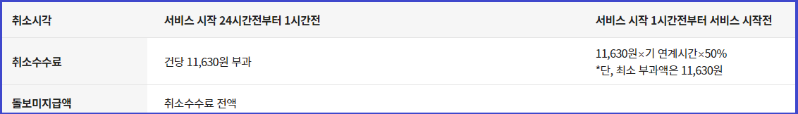 · 2 ~ 4시간 전 및 단시간(1시간) 신청 가능합니다.