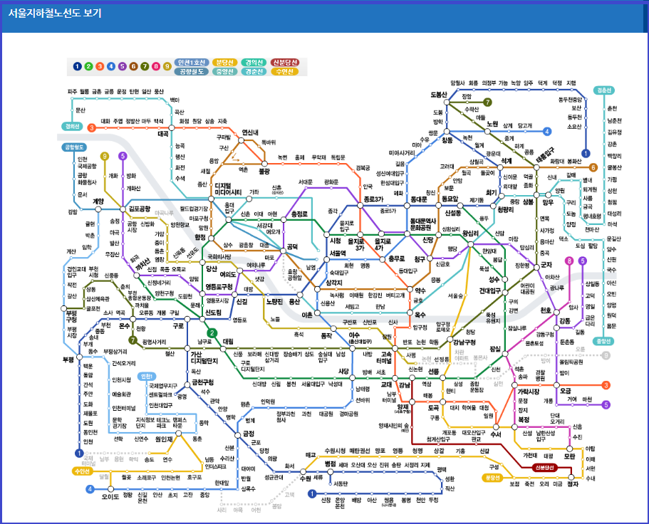 여기에서는 전체 서울지하철노선도 확대 방법과 노선별 확대하는 방법에 대해서