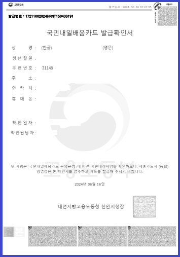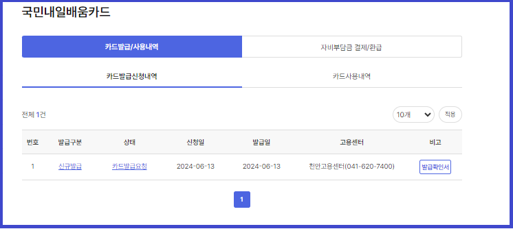 국민내일배움카드 발급확인서를 발급하셨다면,