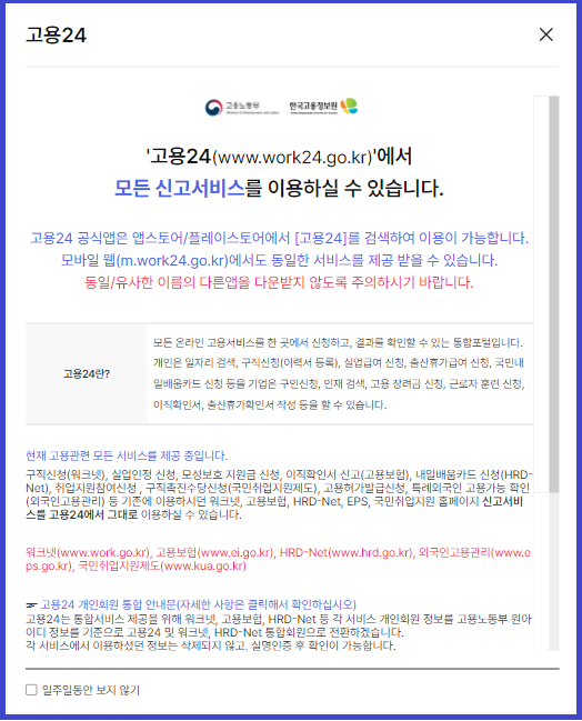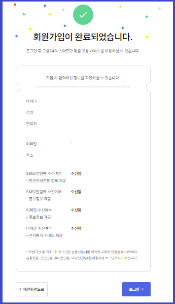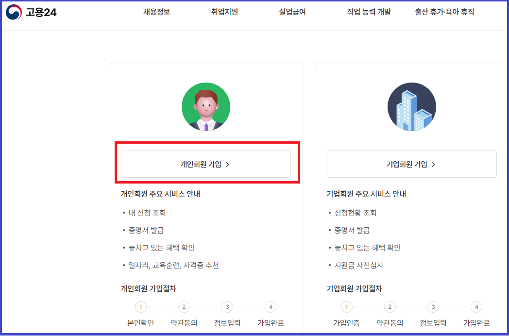 1. 고용 24 홈페이지에 접속 후, 회원가입을 진행합니다.