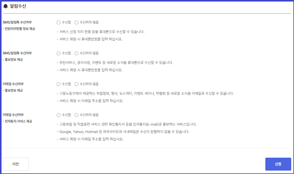 6. 알림 수신사항을 체크합니다.
