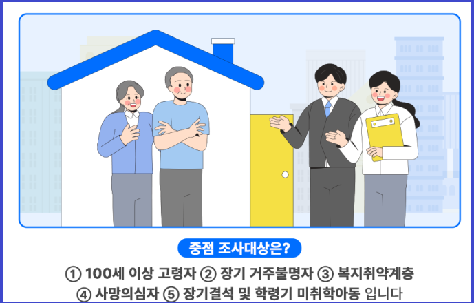 (중점조사 대상 : 복지취약계층, 사망의심자, 장기결석 및 학령기 미취학아동,