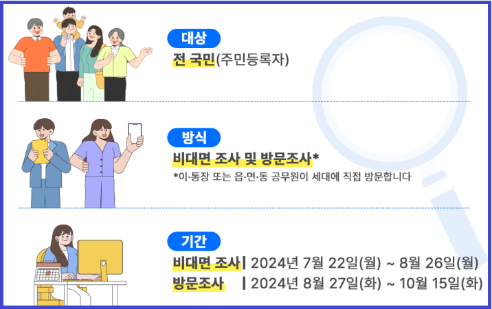 2024년 7월 22일부터 10월 15일까지 전 국민을 대상으로 "2024년 주민등록 사실조사"가 실시된다고 합니다.