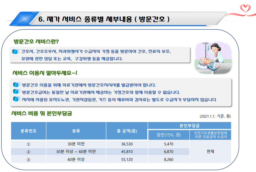 · 65세 이상 노인 또는 치매, 중풍, 피킨스병 등 노인성 질병을 앓고 있는 65세 미만인 자 중